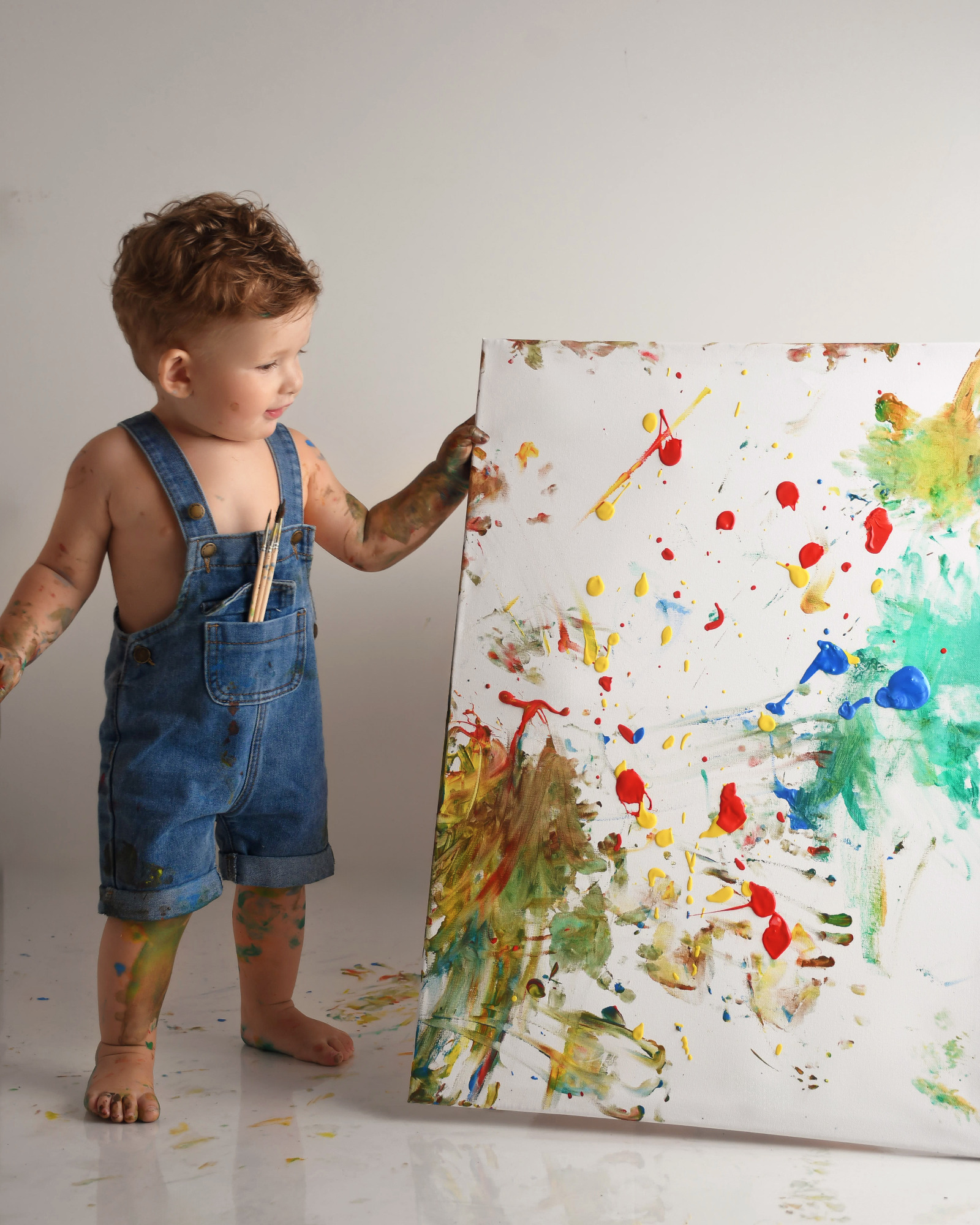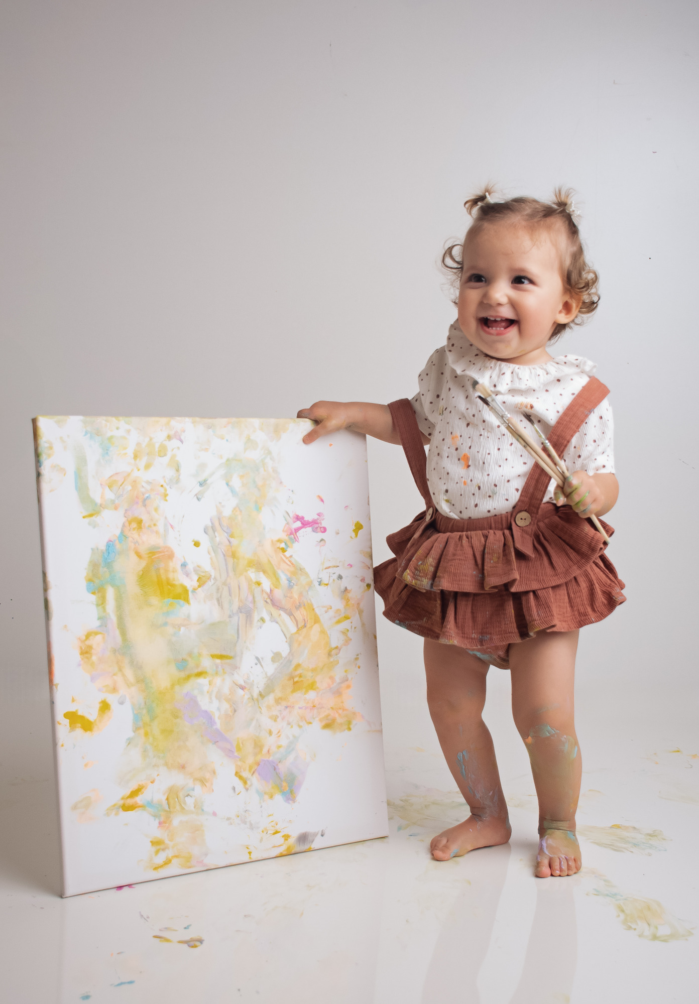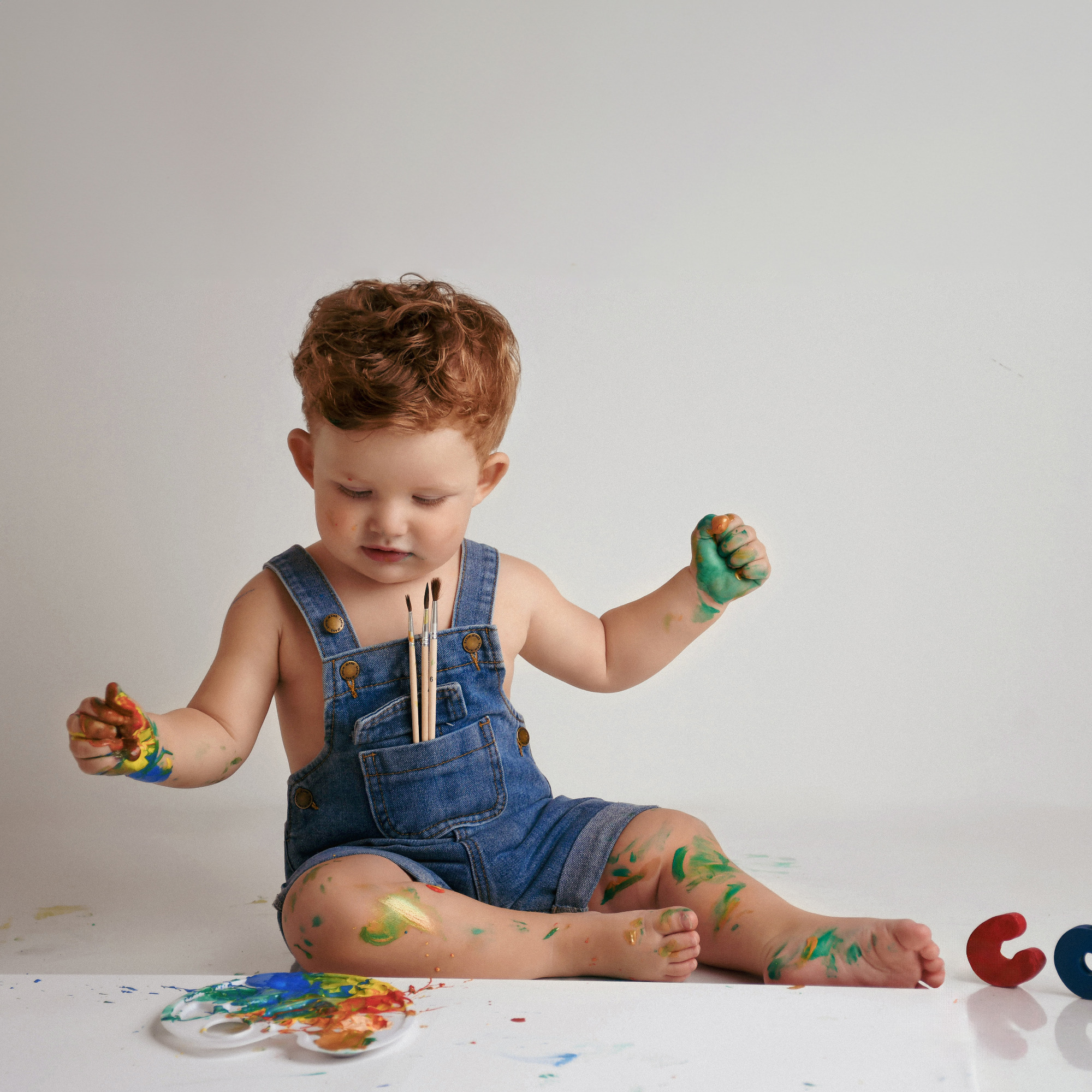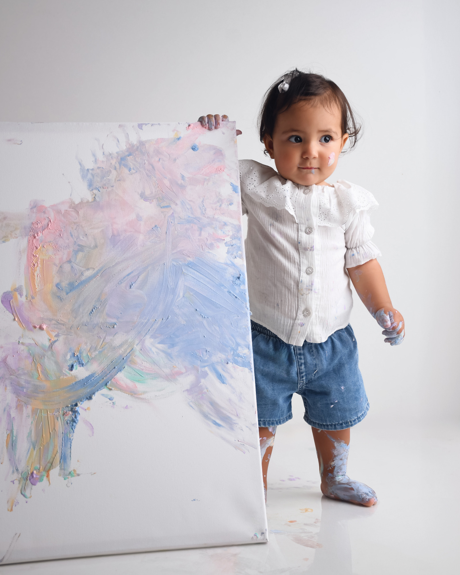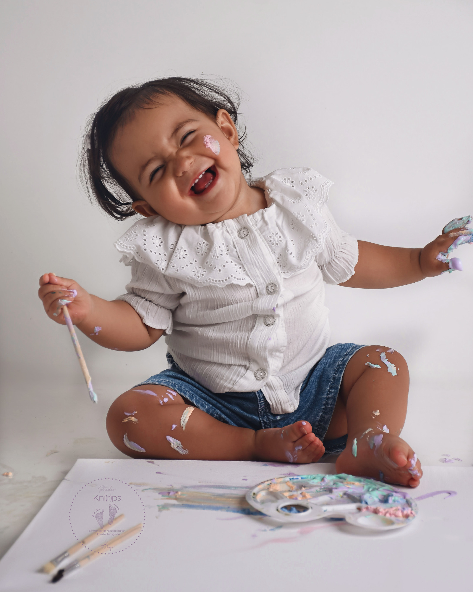 Dein kleiner Schatz á la Picasso bei mir im Studio! Was ich damit meine? Da darf sich mein kleiner Gast komplett austoben und anstatt eines klassischen Cakesmash-Shootings sich künstlerisch entfalten und auf einer svon mir vorbereiteten Leinwand sein erstes eigenes Kunstwerk erschaffen. Ganz im Stil eines wahren Künstlers – mit Farbe, Fantasie und einer Prise Spaß!